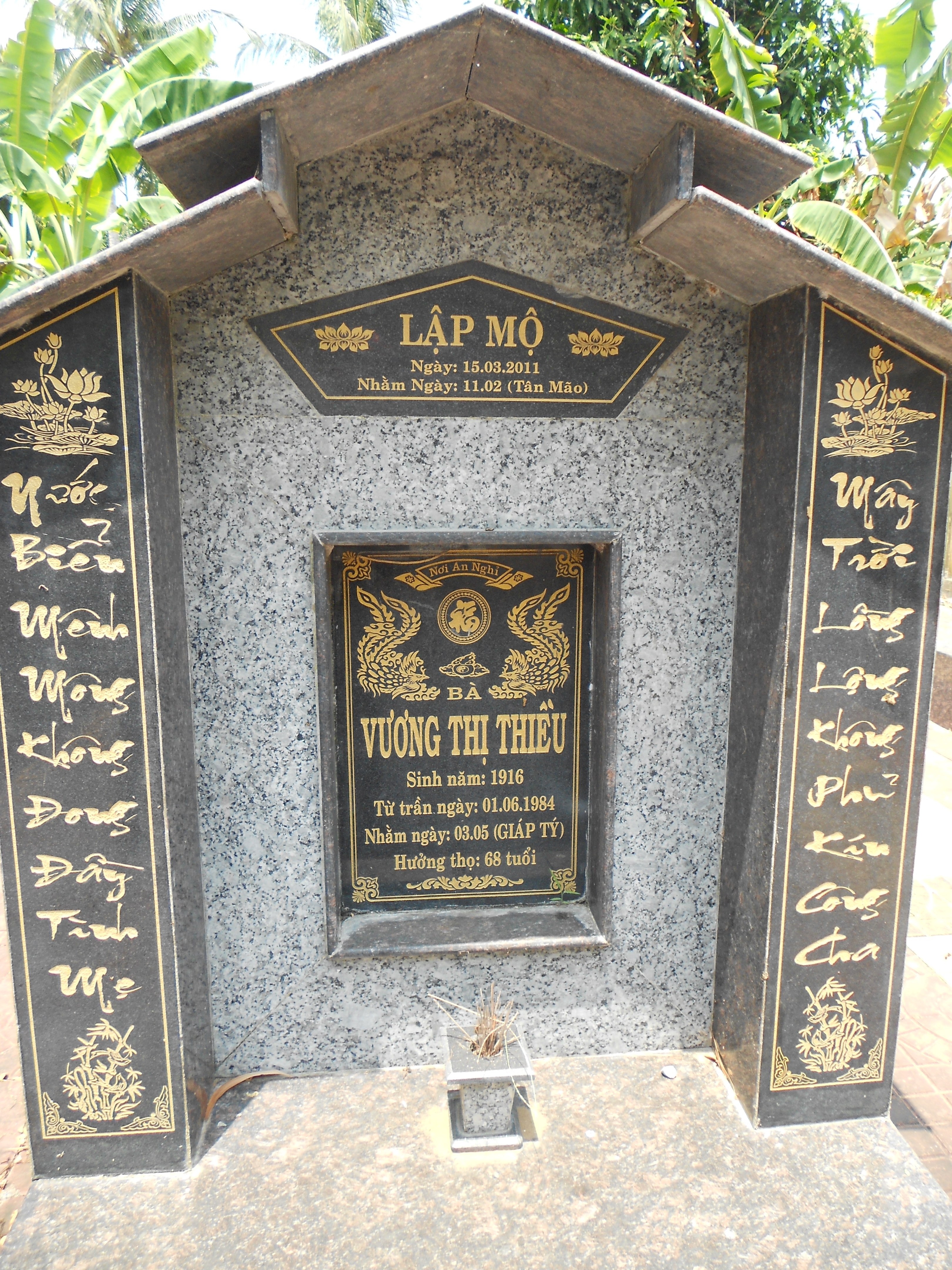 | Mẹ qua đời | VƯƠNG THỊ THIỀU 3 tháng 05 1984 (Nhầm ngày mùng Ba tháng Tư năm Giáp Tý - Dương lịch hiện tại còn cách 114 ngày ứng với ngày 19 tháng 05 năm 2026) (Tuổi đời 50 niên) |