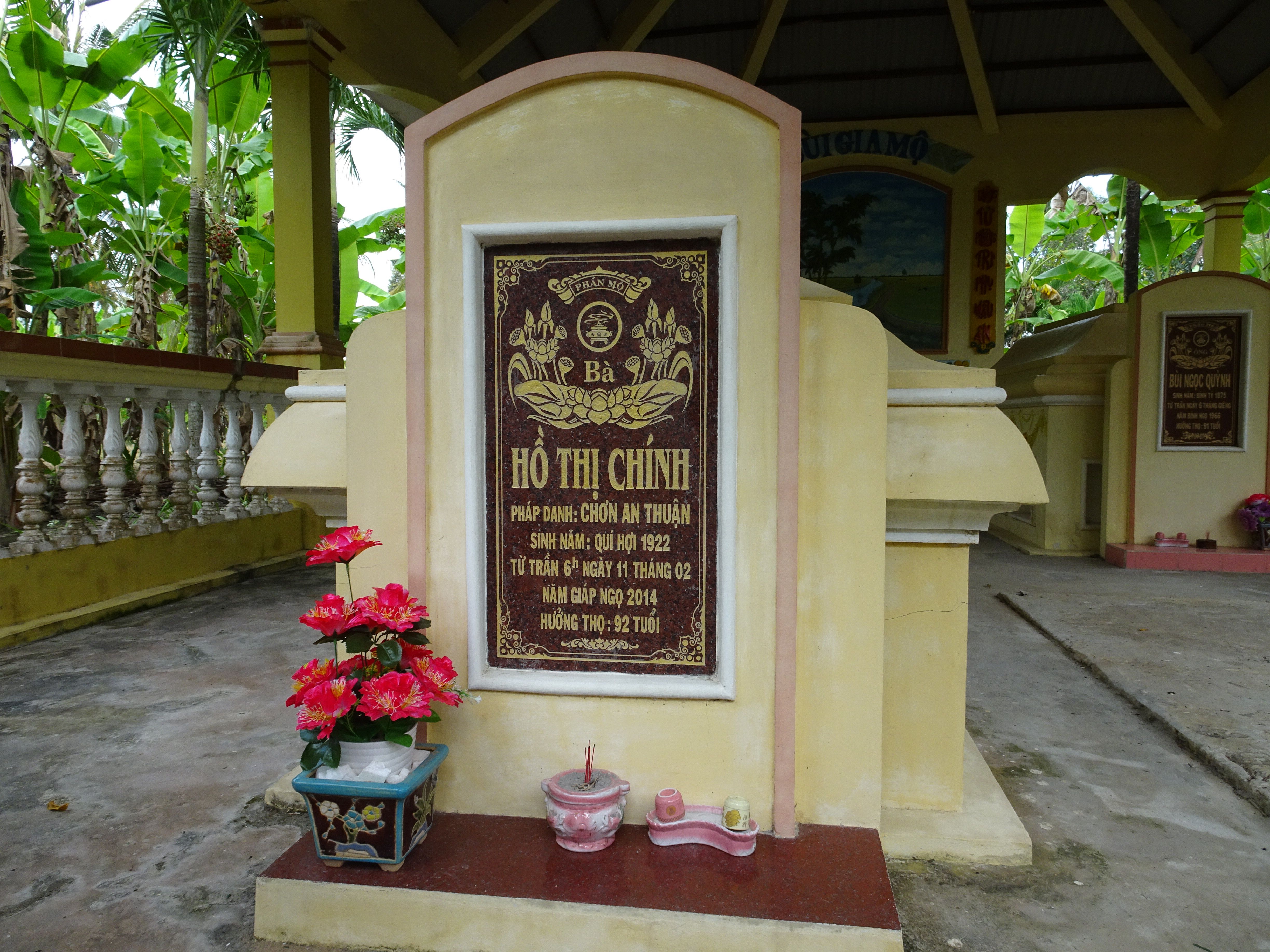 | Chôn cất | số 108, khóm 4, phường Tân Thành, thành phố Cà Mau, tỉnh Cà Mau, Vietnam Vĩ độ (Lat): N9.187427 Kinh độ (Lon): E105.206064 |